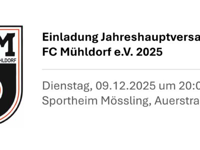 Einladung Jahreshauptversammlung FC Mühldorf e.V. 2025 – Dienstag, 09.12.2025 um 20:00 Uhr